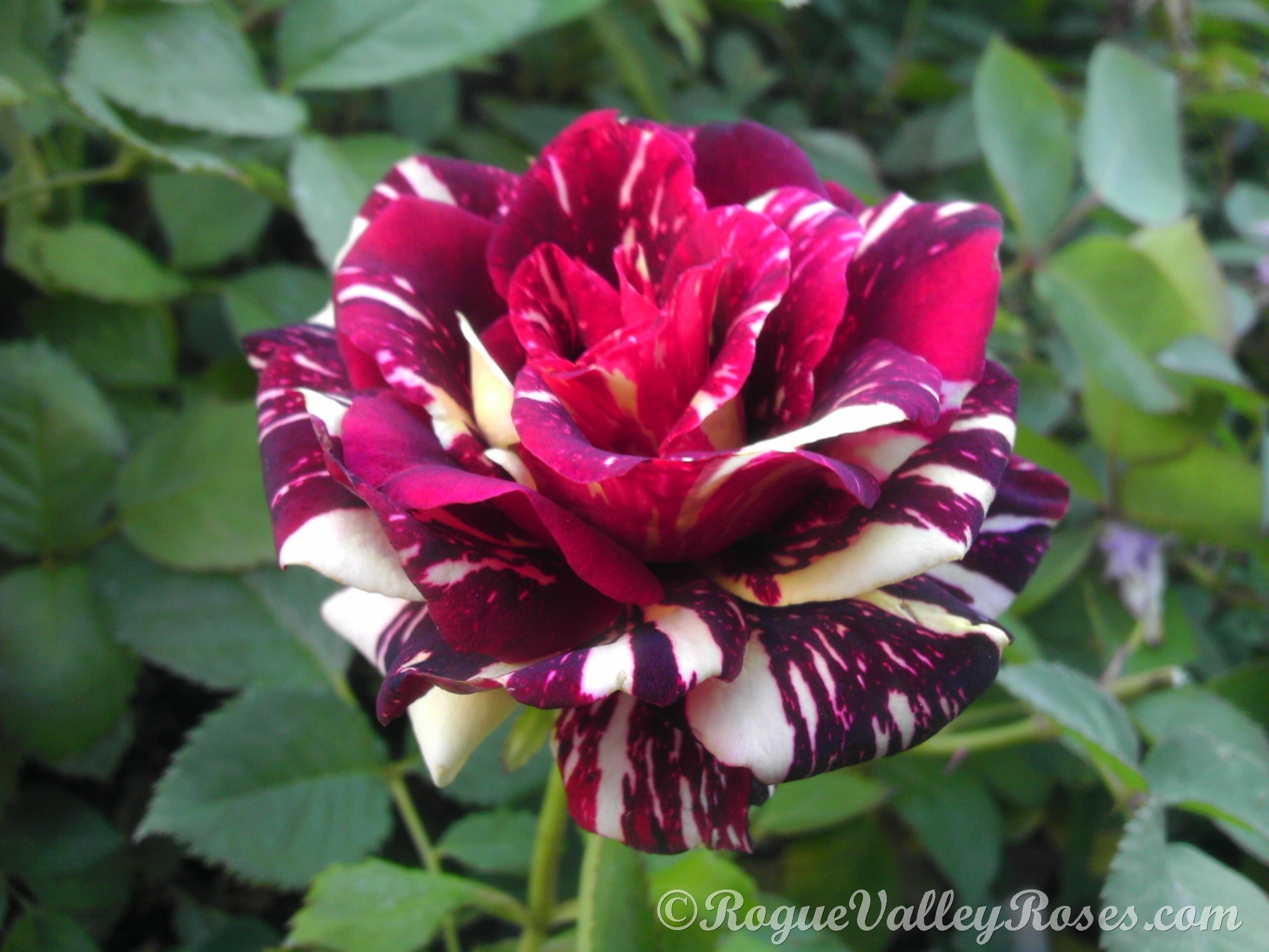 This appears to be related to the Miniature, Hocus Pocus, a discovered sport of Black Beauty, introduced by Kordes in 2000. Hocus Pocus occasionally reverts, as do many striped roses, to it’s parent, Black Beauty. Abracadabra seems to revert much less frequently; though I have observed a solid yellow or solid russet blooming cane, here and there, among hundreds of stock plants, on an otherwise striped blooming plant. In just a few years of experience with this variety here at RVR, removing the cane involving the reversion, so far, seems to stop the process. NOTE: We will only send out plants that we have seen bloom at least once correctly as striped. We cannot replace plants that do revert.