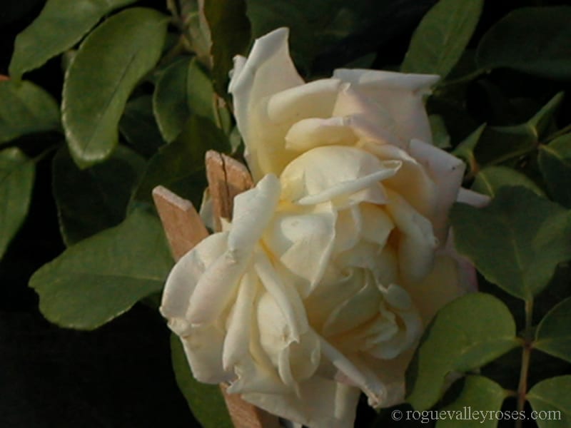 This rose is one of the Bermuda teas, known as Soncy there. Its large scrolled. silky blooms are pale lemon yellow deepening toward the base. Dark green foliage on a very large sturdy shrub broader than it is tall. Pure romance. Quite suitable for a warm wall. This rose is reliably hardy to 10 degrees F in Zone 8. Zone 7 growers need to find a warm micro climate area out of prevailing winds and protect during hard freezes.