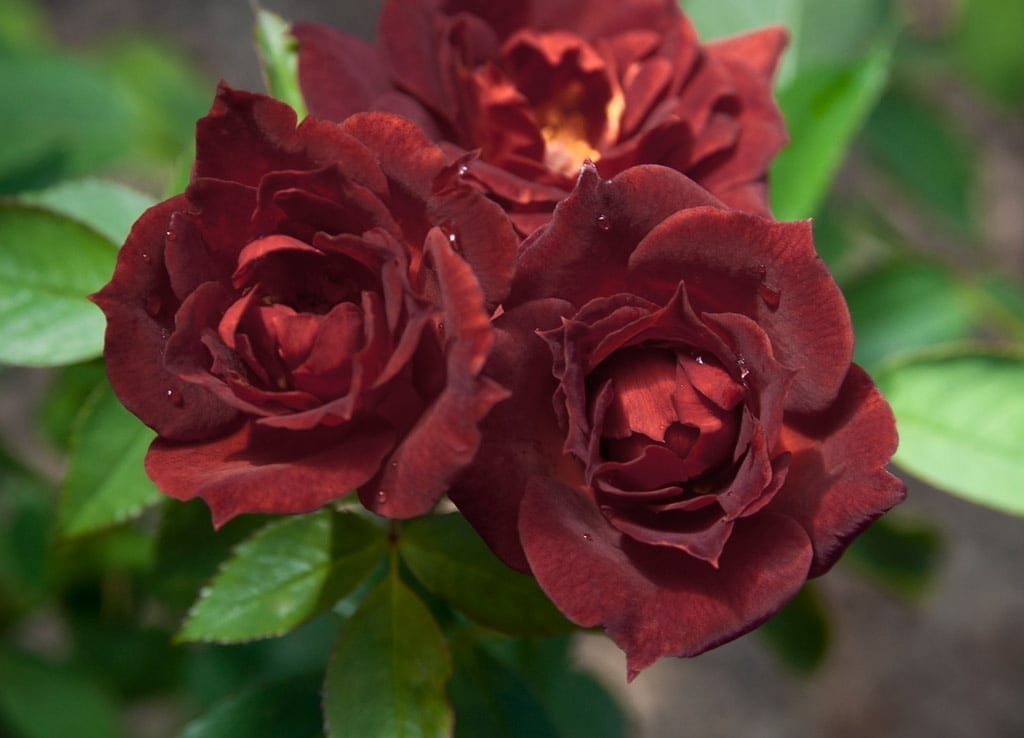 This Paul Barden rose is best described as a Miniflora type shrub: the blooms and foliage fit the standard definition for a miniature, but the plant is fairly tall, growing to three to four feet and not quite as wide. It is well branched and blooms generously in frequent flushes. The real feature of this beauty is the remarkable bloom color, an ever-changing blend of mahogany, deep rusty red, and oxblood, occasionally shaded with a purplish overlay. As with most of the so-called brown, or “coffee roses”, the color of this variety is more rusty when the weather is hot, and more of a chocolate brown hue in the cooler weather of spring and fall. It retains a very rich, dark rust color even in the heat of July and August when other brown roses tend to turn a less attractive orangey color. The rose does have a pleasant modern rose scent (often described as a “fresh” fragrance).