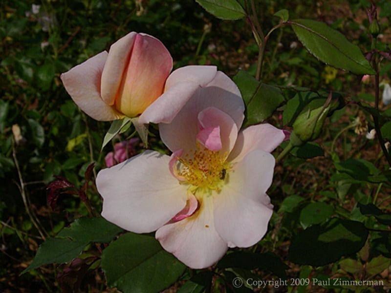 I would welcome information from anyone growing this rose successfully in Zones colder than 6. Blooms are a pale peachy pink with a darker reverse and distinct apricot overtones. The center has shorter ribbon like petals that obscure the stamens. Its tall, upright habit make it appropriate for the back of the border. From all accounts, in warm zones it may be grown as a climber.