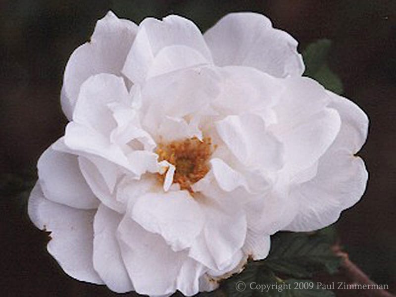This is an intensely fragrant rose of purest white and silky petals that spoil easily in rain. It is an extremely useful shrub in cold climates. Like all rugosas it is not digested well by deer who avoid it. It sets few hips. Some now think it to be a double sport of R. rugosa alba.