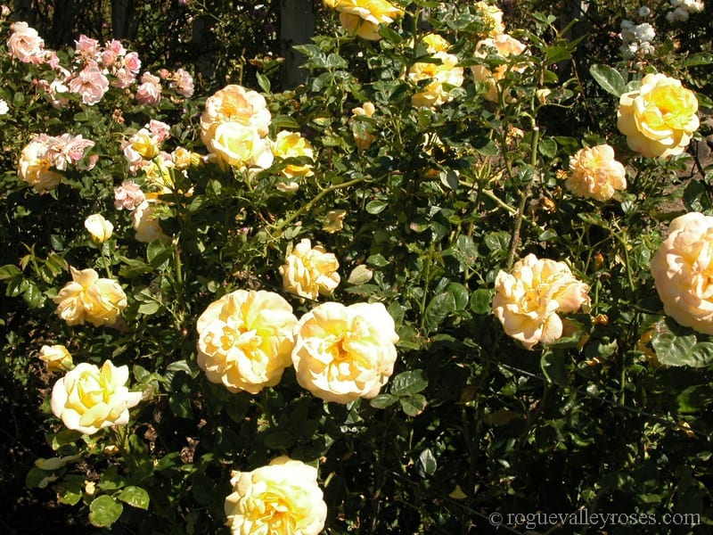 A very vigorous clear pastel yellow Floribunda with large flowers, strongly fragrant. Very healthy and hardy, perhaps below Zone 5.