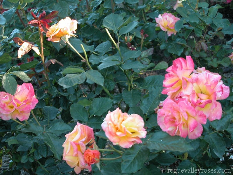 Another Floribunda from the 50’s which combines yellow and red in a subtle way, changing tones as it ages. A great and worthy favorite even today. It is healthy, easy to grow, and always in bloom.