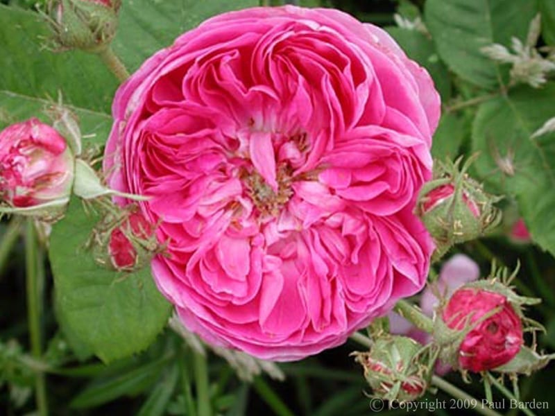 We are not sure what rose we have been given as Duc de Fitzjames, but we are going to offer it in case someone is interested in studying it and comparing notes with us. Most references describe the Duc as being mauve, but our is deep pink with mauve tones.