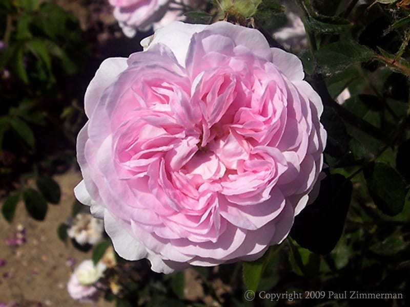 This exquisite beauty is one of rare coloring among the Gallica hybrids, its soft blush pink hues undoubtedly inherited from its purported China ancestor. Every bloom of this rose is perfect in color and form; its cupped shape holding over a hundred soft pink petals, all perfectly placed. Add to that a most wonderful fragrance, beautiful foliage and growth, and we have one of the finest Old Roses ever created. This is a rose whose blossoms can entrance those who behold them. Photo and Comment Copyright 2007 Paul Barden and The Uncommon Rose