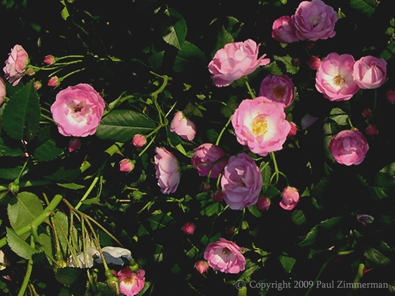 “Cupped blooms of medium pink form around a white eye with golden stamens on this lovely climber Growth Size & Characteristics are: tall climber (15′-20′), slight fragrance, repeat flowering” Photo and Information from Ashdown Roses