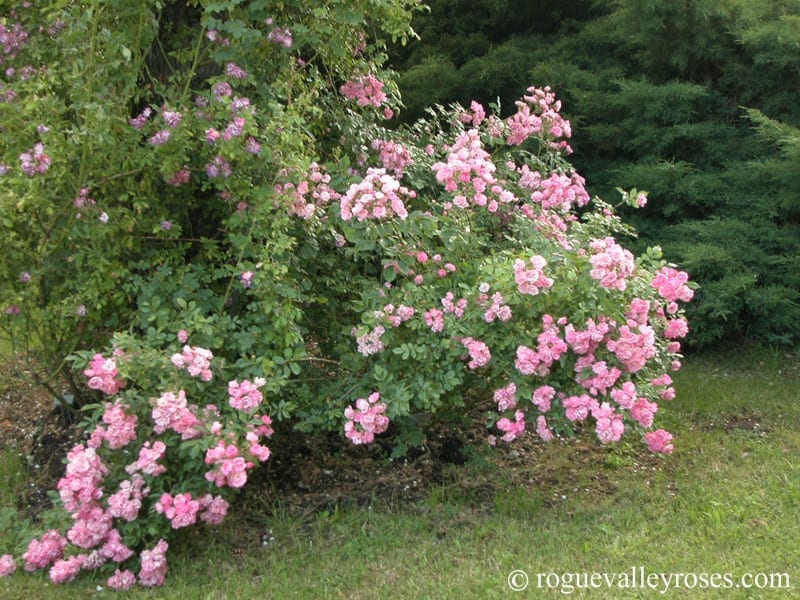 This can easily be maintained as a graceful, continuously and prolifically blooming arching shrub in agreeable shades of cool pink. Or, it can, apparently, be grown as a small climber. It is a joy in our August garden when many roses languish in the heat.