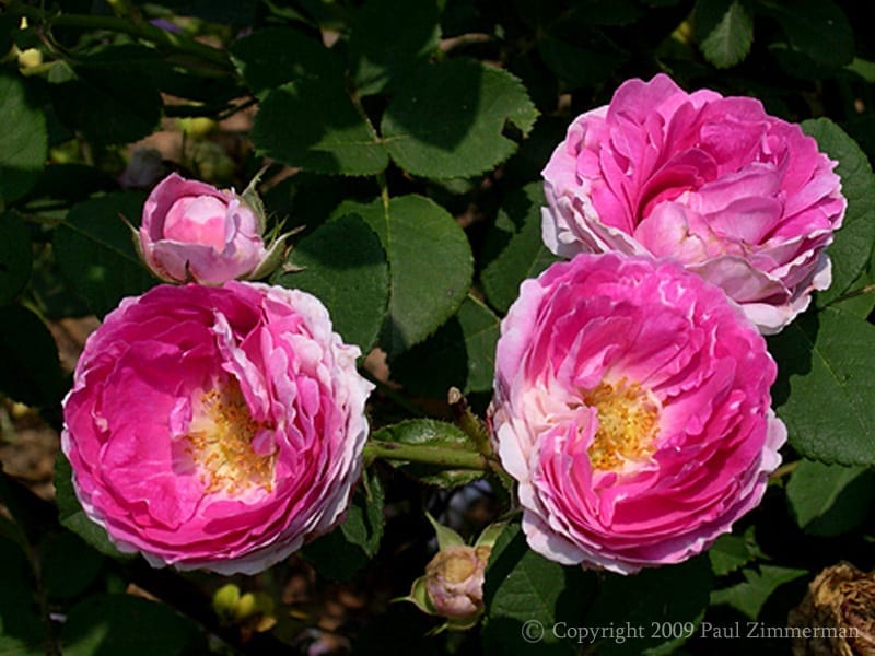 “2” Blooms of rosy, pinky/purply blooms flushed with splotches of white on a hardy rambler. It’s always a real eye catcher in bloom and the dark green foliage is a great backdrop for other climbers during the rest of the season. Spring flowering.” Photo and Information from Ashdown Roses