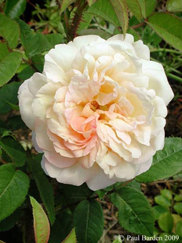 I have yet to see a Pedro Dot rose that did not have a special quality that made it memorable. The very fragrant blooms of this moss are shockingly beautiful in an ethereal kind of way. The silky fully petaled blooms have all the shades of apricot in the softest tones. So what if they, like lilacs, only come once a year. I have read that this moss is capable of climbing. We plan to keep ours tamed by pegging and stretching it along a fence. Photo copyright Paul Barden 2009.
