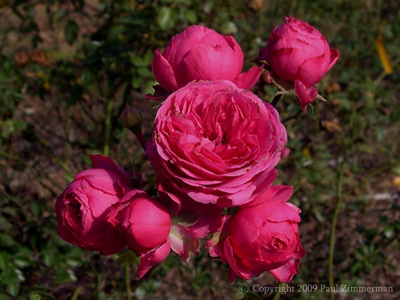 “This lovely rose bears lovely rose pink blooms that are heavily petalled and swirl around the centres. They bloom in clusters and the fat buds offset the open blooms. A great little rose from the Fineschi Garden In Italy. Growth Size & Characteristics are: midsize shrub (3′-5′), , fragrant, repeat flowering” Photo and Information from Ashdown Roses