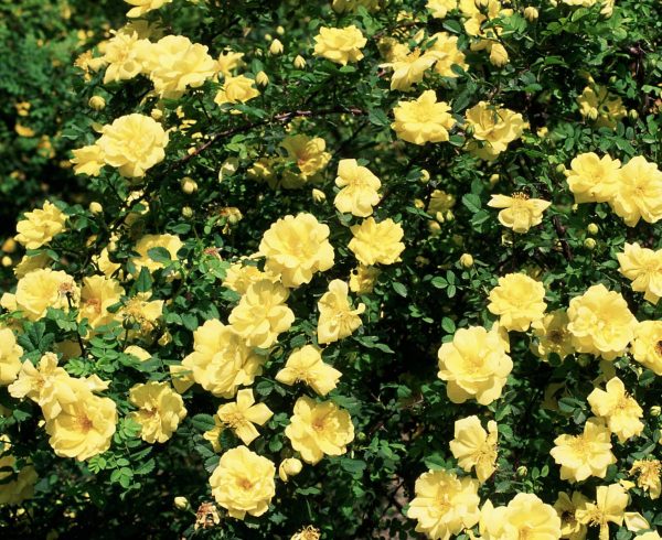 In the American West there is no more historic rose than this rose of the Pioneers. In Oregon it is also known as the Logtown rose, appearing as it does, in so many abandoned company towns of the glory days of logging. It makes lovely thickets which are to be found wherever it was left along the Oregon trail, even into the plains. Some hold it is The Yellow Rose of Texas though there is fierce debate about that. At any rate this is a must have for anyone with a corner in their garden and a spot in their heart for history. The bloom is very early, fragrant and exquisite. (The name is correctly spelled with one “r”.)