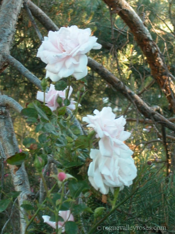 Large, fragrant, pale pink blooms of hybrid tea form. One of the very best climbers, ever. Steady rebloom.