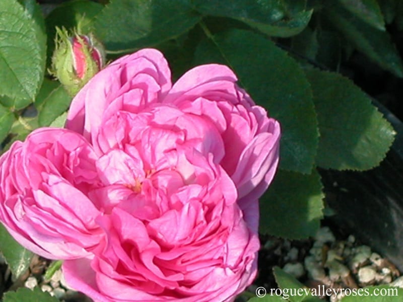 We are pleased to add this rarely seen repeat-blooming Antique Moss Rose to our collection. A friend of ours brought it to our attention a few years ago and we were pleased with the quality of bloom and the fairly good repeat after its first flush. ‘René d’Anjou’ was introduced into commerce in 1854 and would undoubtedly have been a big hit, since repeat blooming Mosses were a rarity. Blooms are very double, about 3 inches across and often display quartered bloom form. Bloom color is somewhat variable, ranging from a pale warm pink to a deeper, pure rose pink hue. It has an excellent fragrance as well. The mossing on the buds isn’t as extreme as some of the once-blooming varieties, but is definitely present as shorter, more dense mossing. Expect 3 crops of bloom per year once fully established. Disease resistance will vary depending on your location. Photo and Comments Copyright 2007 Paul Barden and The Uncommon Rose