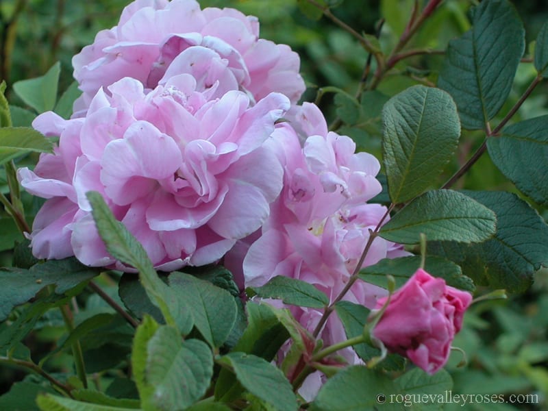 Therese Bugnet is hardy to the coldest zone roses can be grown in: 3. Yet it is uniquely lovely enough to be assured a place in my Zone 8 garden. It is truly a healthy, handsome plant in all seasons with its soft pink fluffy blooms, dark red canes and silky foliage (which does not recall its rugosa lineaage). It very nearly thornless,has wonderful fragrance and great rebloom.