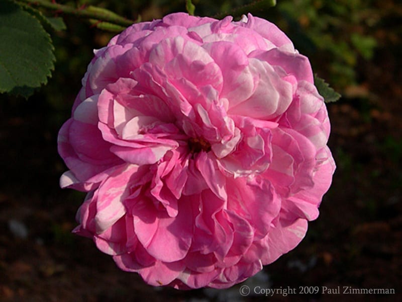 White to red, pink stripes, pink edges. Moderate fragrance. Blooms have an average diameter of 2.5″. Medium, full, cupped-to-flat bloom form. Once-blooming spring or summer.